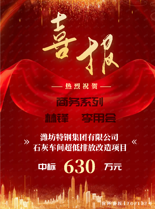 營(yíng)口市環(huán)境工程開(kāi)發(fā)有限公司中標(biāo)濰坊特鋼集團(tuán)有限公司石灰車間超低排放改造項(xiàng)目